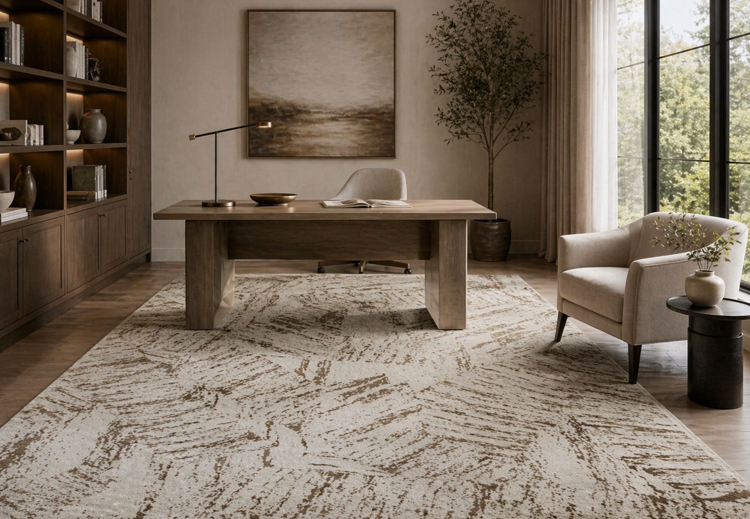 U ovoj kategoriji dominiraju beli, bež, sivi i braon tepisi, često spojeni u jednom dezenu. To su nijanse koje se lako kombinuju sa nameštajem u boji drveta, sivim garniturama, belim komodama, tamnijim stolovima ili zavesama u neutralnim tonovima.